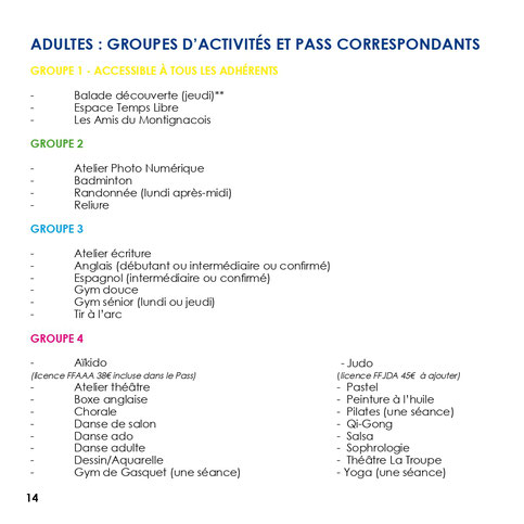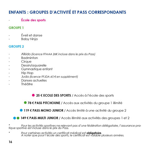- Les personnes souhaitant adhérer à une Fédération spécifique devront s’acquitter de la licence fédérale, en supplément.