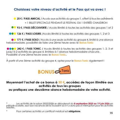 - Réduction de 15 % à partir du 2ème Pass, 25 % sur le 3ème (réduction non applicable au PASS Amical).